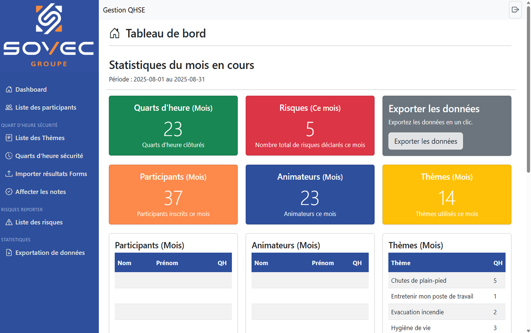 - Donner aux techniciens et encadrants un outil simple pour consulter et animer les QHS